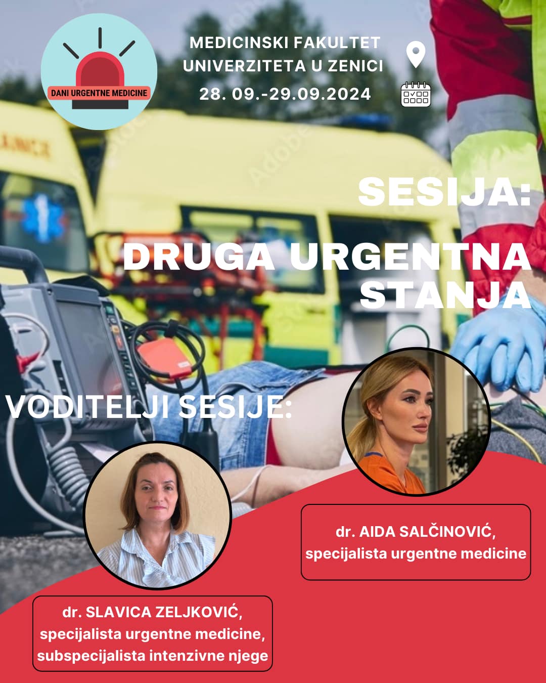 #Četvrta sesija koju smo pripremili za vas je sesija Drugih #urgentnih stanja, a voditelji iste su: dr. Aida Salčinović i dr. Slavica Zeljković.